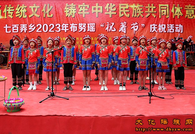 “过来兄弟们,过来老表们;来唱歌跳舞,来敲锣打鼓。”上午十时,随着布努瑶民间这首传唱千山万弄的迎客歌响起,该乡布努瑶祝著节庆祝活动文艺演出随即开演。节目内容包括布努瑶原生态铜鼓舞表演、祭密仪式展演、幼儿童谣表演、男女撒旺对唱、女子深情苏分、民间笑酒表演、激情皮鼓表演、校园民俗歌曲献唱、歌颂党恩歌曲合唱等,可谓精彩纷呈,表现形式多样,为观众和游客带来了最独特、最浓郁的祝著文化盛宴,不时赢得阵阵鼓掌声和喝彩声。通过忆党史、颂党恩、感党情、唱瑶歌、跳瑶舞、笑瑶酒等活动载体,充分展现了布努瑶优秀历史文化的独特魅力,抒发了布努瑶人民忠诚于党、热爱祖国的殷殷深情,彰显了全乡人民铸牢中华民族共同体意识、团结奋进新征程的坚强决心。
